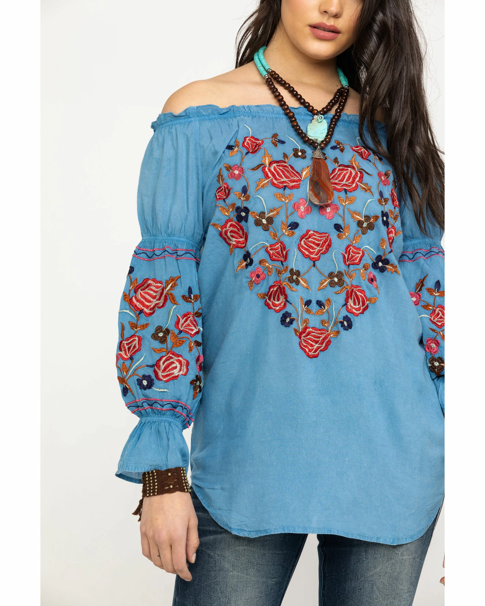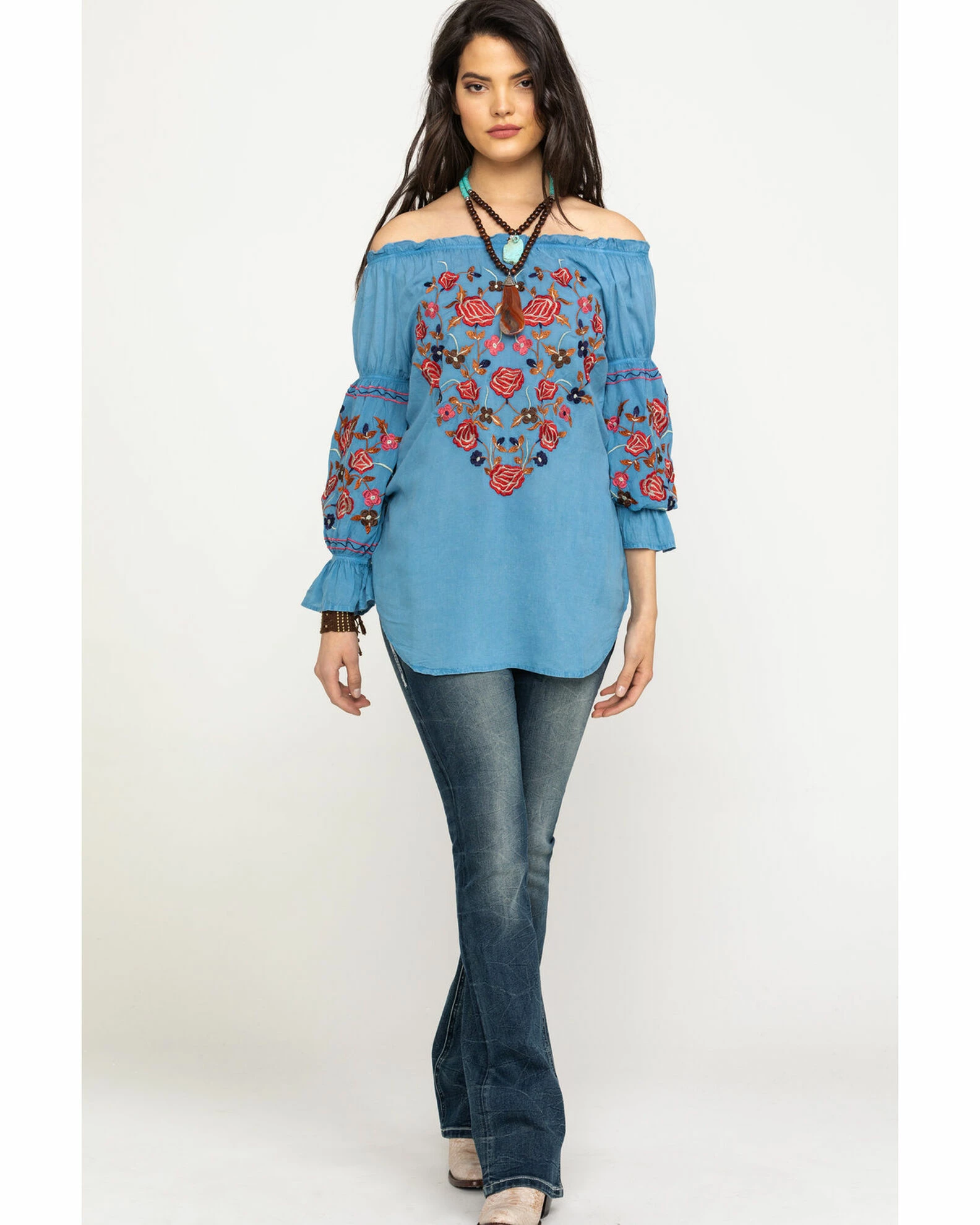 Honey Creek By Scully Women’s Avalanche Peasant Blouse Blue