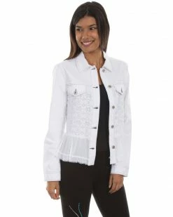 Scully Women’s Georgette Ruffle Denim Jacket White