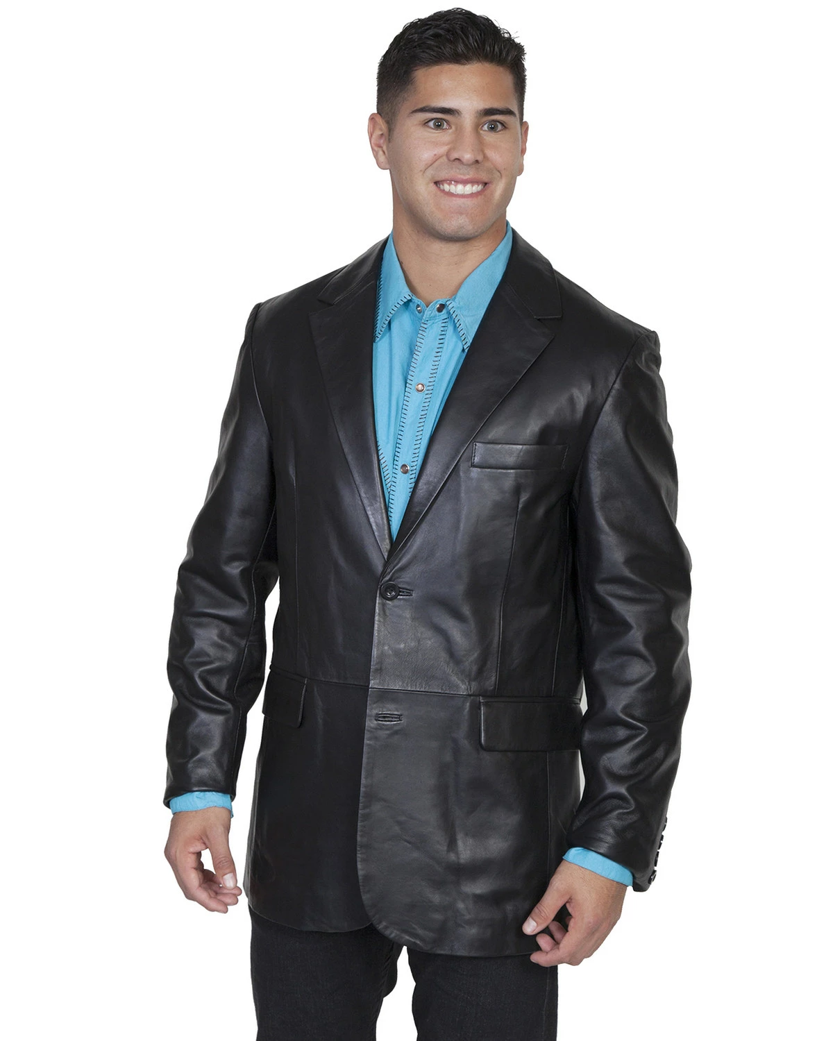 When it’s cold outside, you can still sport the finest western style with this Scully blazer. Made from lamb skin, this striking blazer features a button front closure, a single chest welt pocket, and two front extrior pockets with flap closures. Available in big and tall sizes.