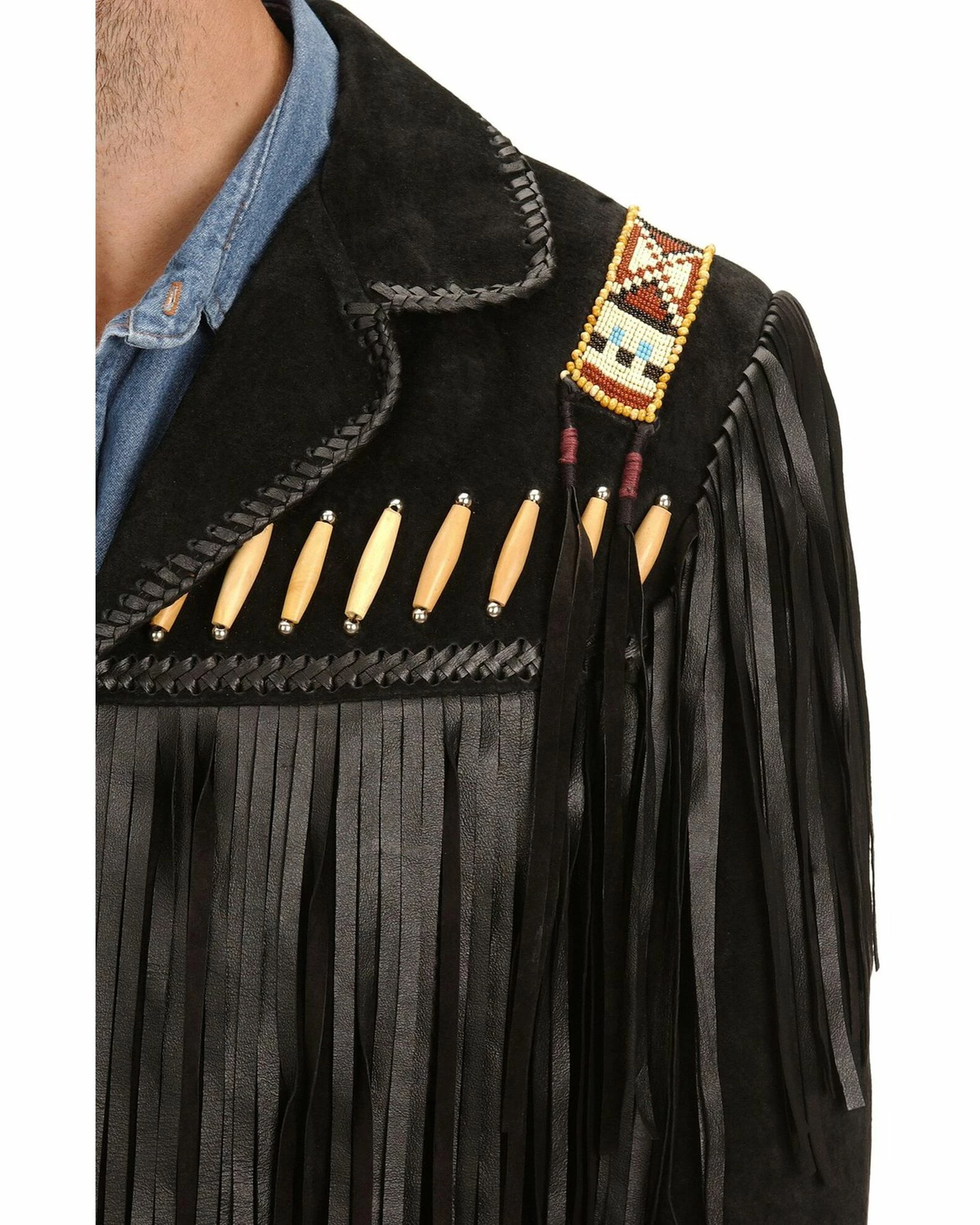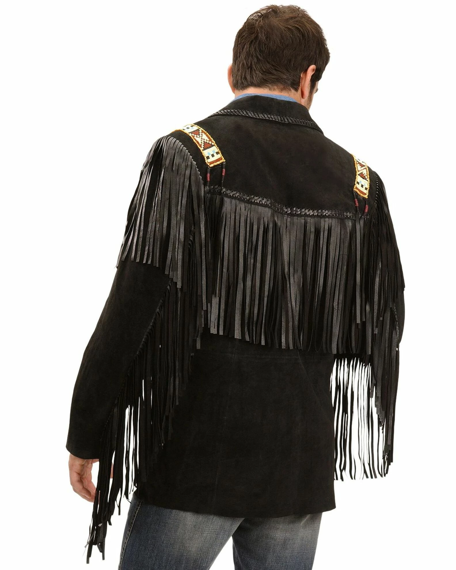 - Long leather fringe on yokes, shoulders, sleeves and pockets