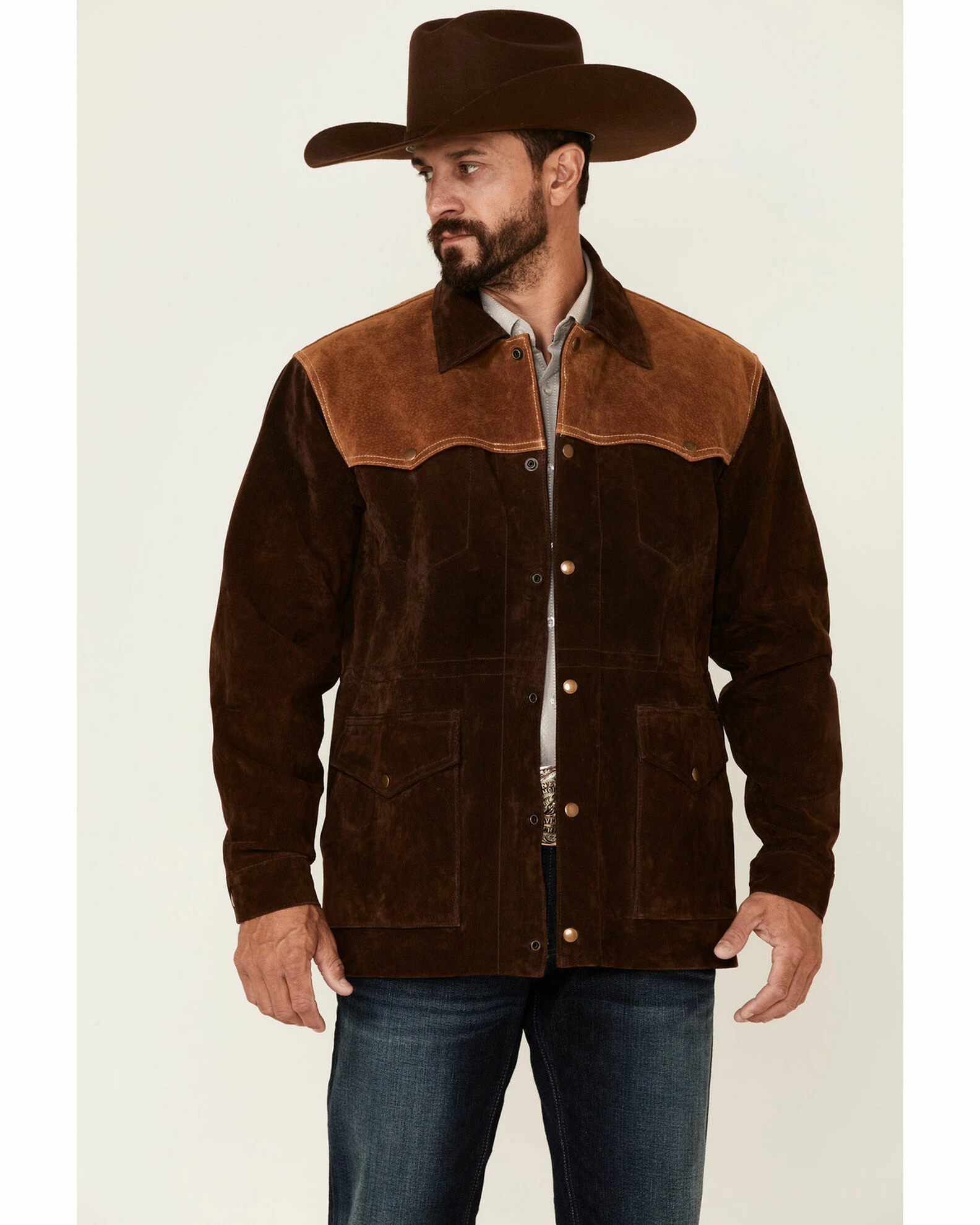 Scully Men’s Chocolate Two-Tone Suede Snap-Front Rancher Car Coat Brown