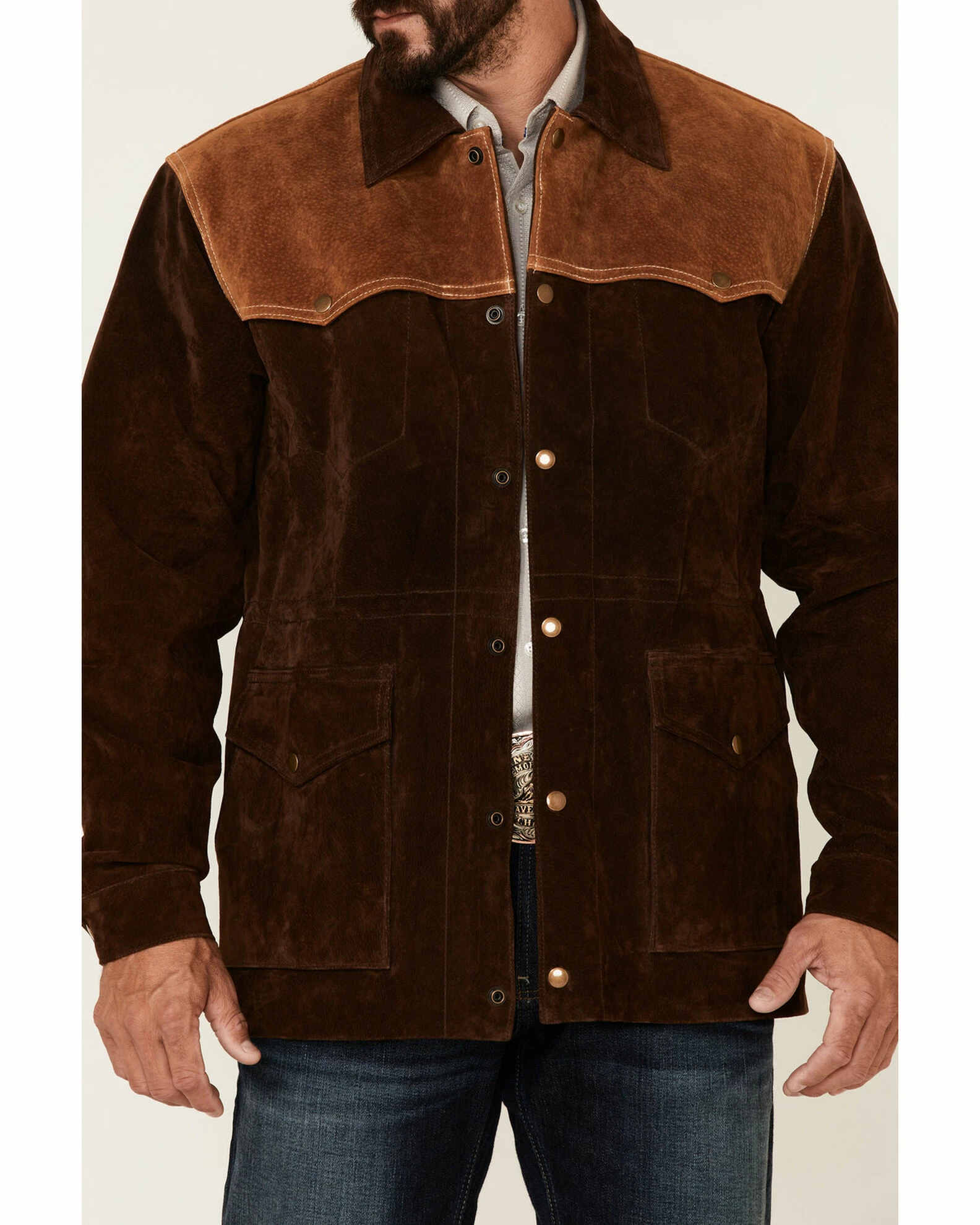 - Two-tone suede w/ tan leather yokes
