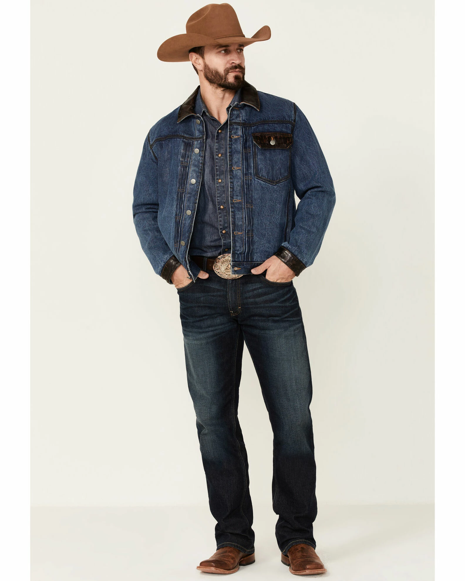 Scully Men’s Indigo Denim Leather Trim Button-Front Jacket