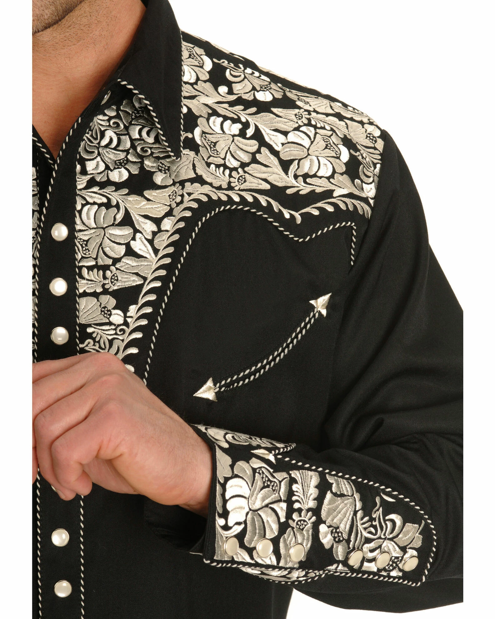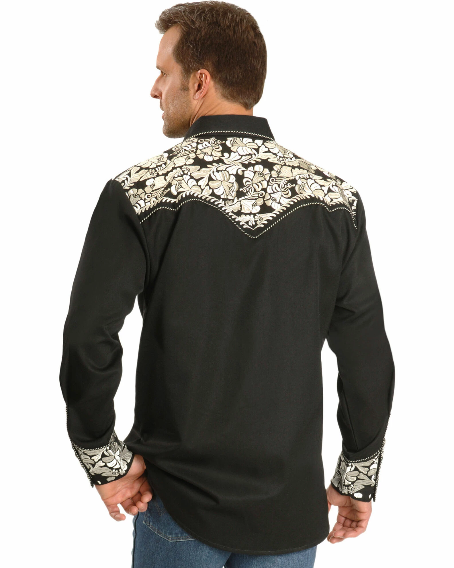 Scully Men’s Silver Embroidered Gunfighter Long Sleeve Western Shirt