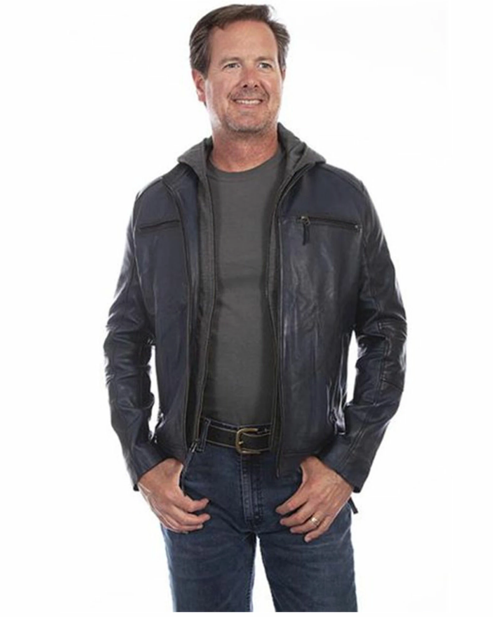 Scully Men’s Soft Lamb Zip-Front Hooded Leather Jacket Cognac