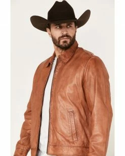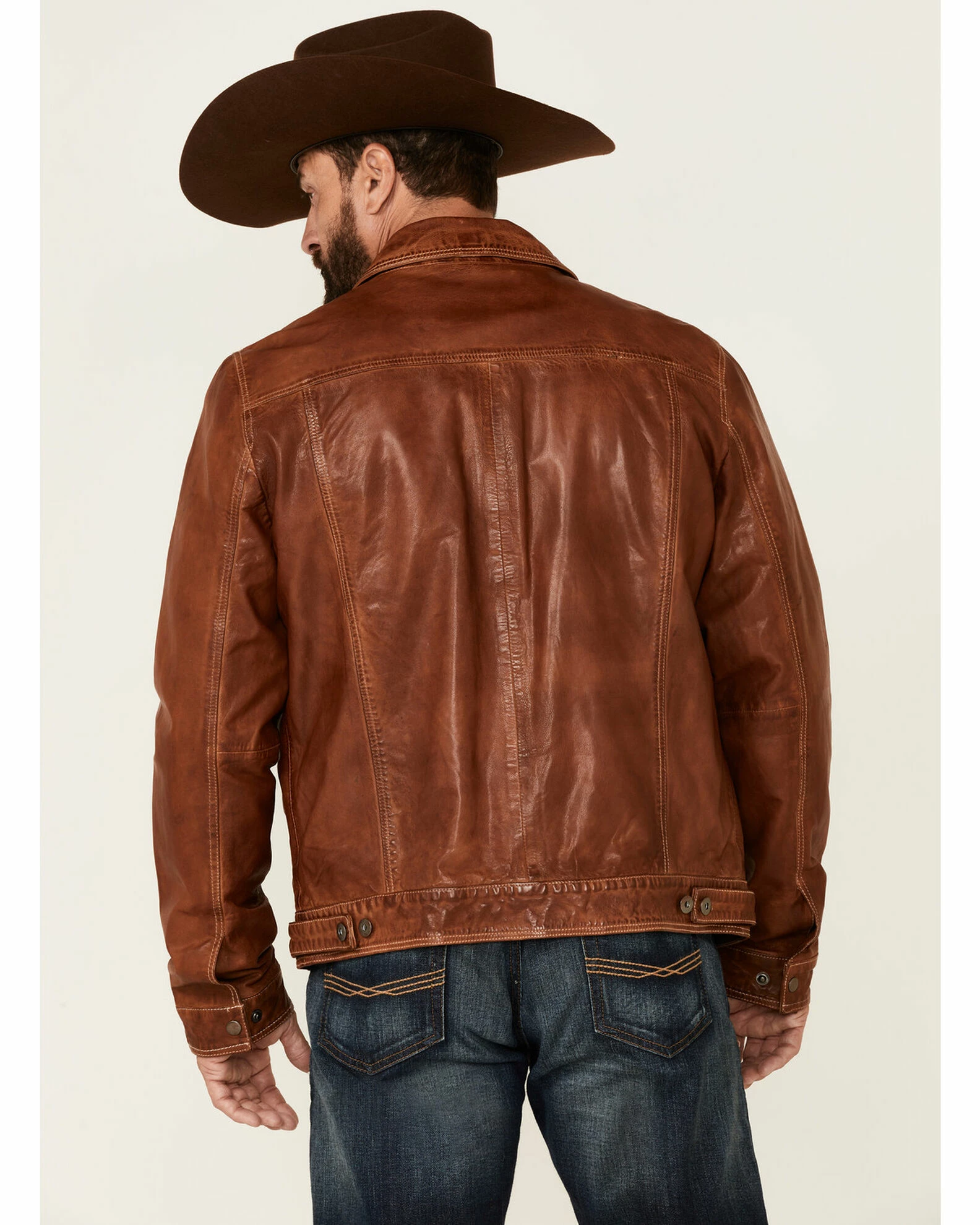 Scully Men’s Tan Leather Button-Front Trucker Jacket