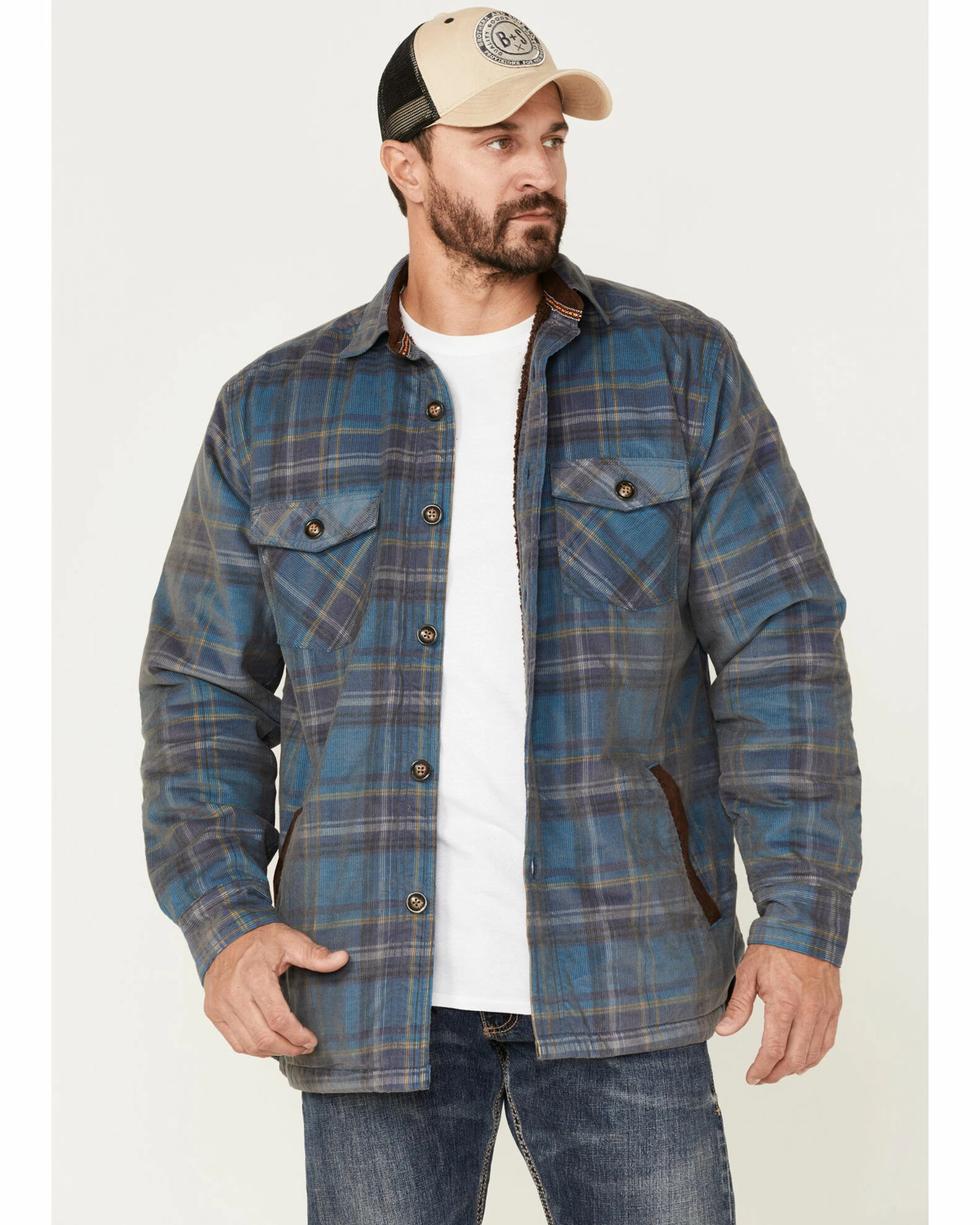 Scully Sculy Men’s Plaid Print Corduroy Sherpa Lined Button Jacket Navy