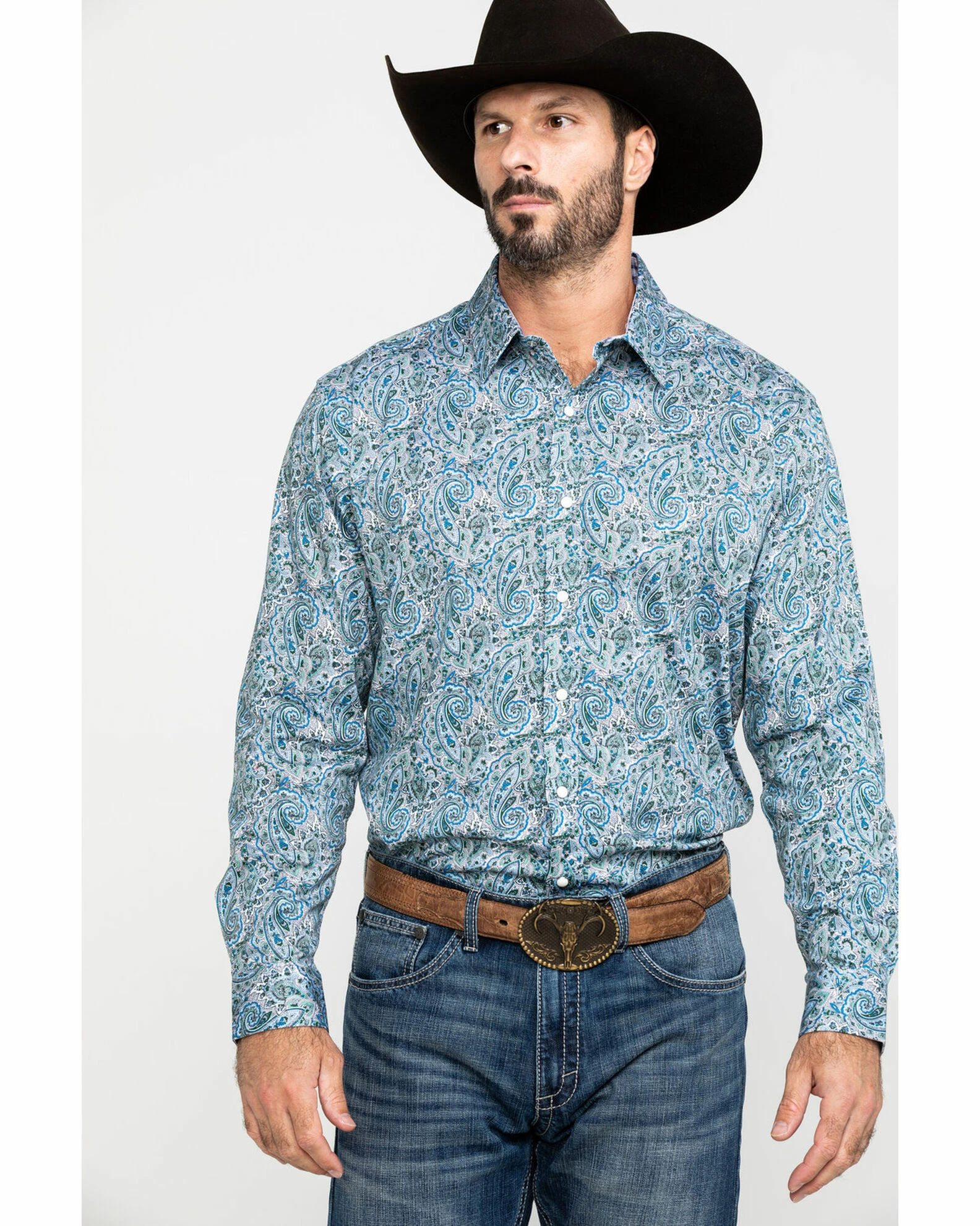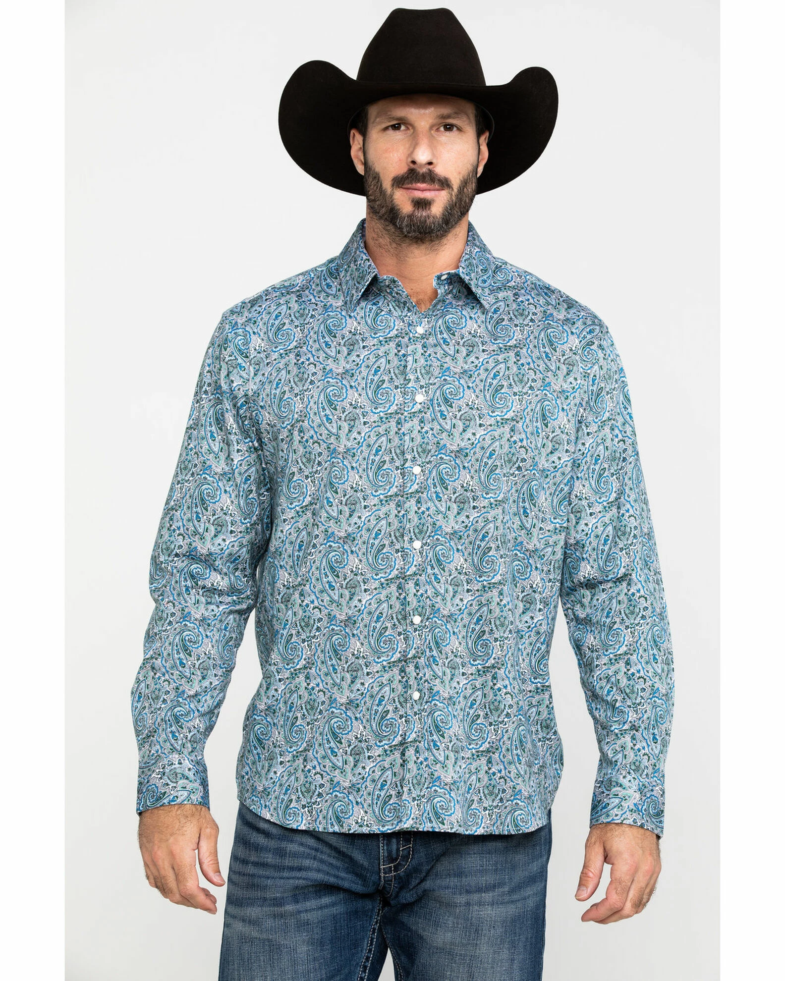 Scully Signature Soft Series Men’s Turquoise Paisley Print Long Sleeve Western Shirt