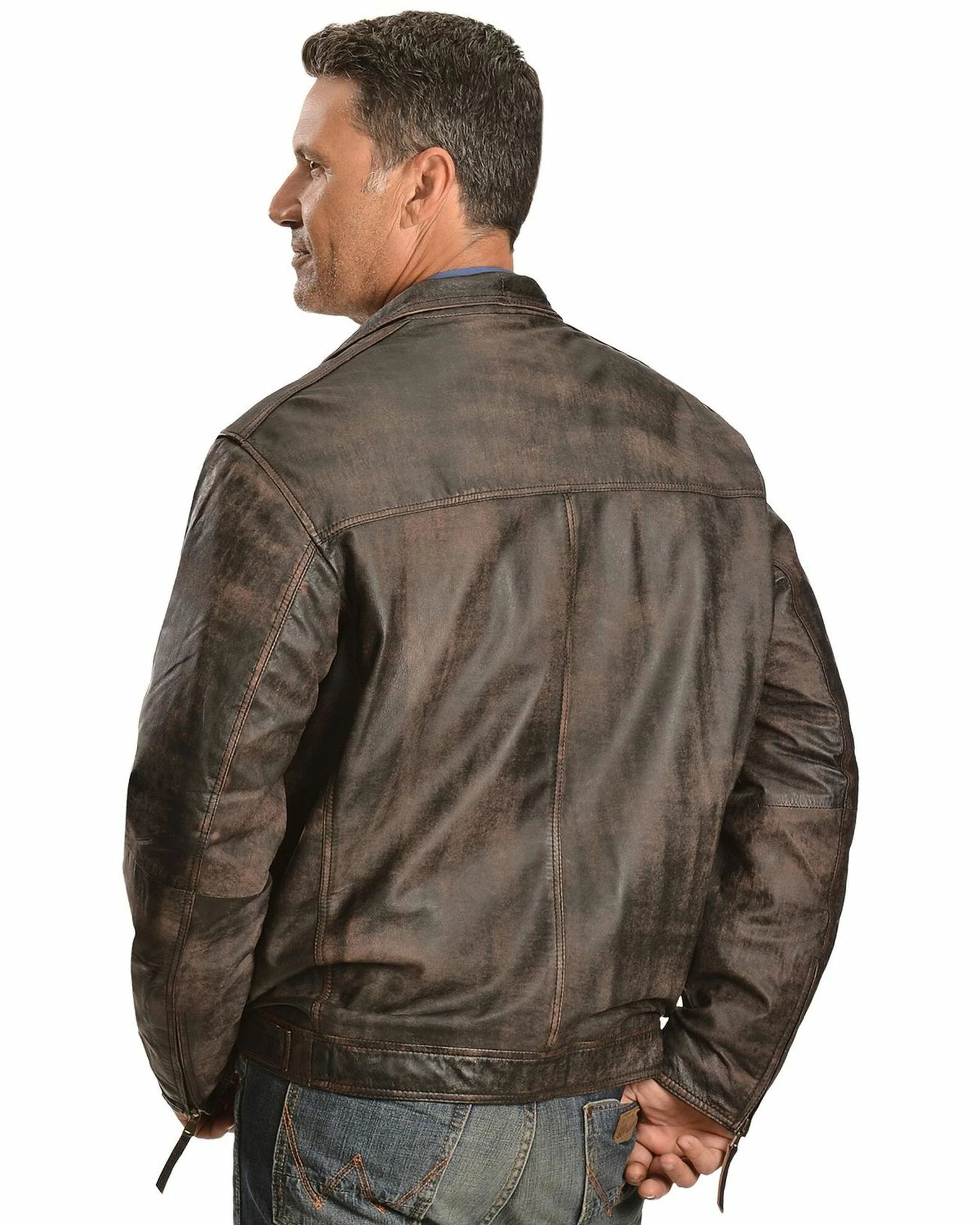 Richly handsome and finely designed, Scully Leathers has out done themselves with this lambskin leather jacket. This light-weight jacket has just enough detail to catch your eye. Genuine vintage-looking lambskin leather and quality tailoring makes this jacket a favorite. Two button interior pockets. Approx. 29″ long. Body lining is 100% cotton and sleeve lining is 100% polyester. Imported.