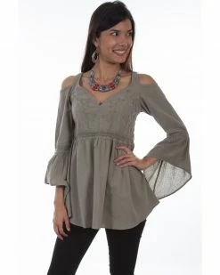 Scully Women’s Cold Shoulder Long Sleeve Tunic Top Olive