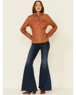 - Snap front placket and cuffs